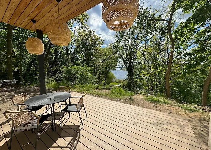 Çin Çay Evi'dan 7 kilometre mesafede bulunan Auszeit Am Schwielowsee - Exklusiver Bungalow Mit Seeblick, teras ile 1 yatak odalı bir tesistir. Tam donanımlı mutfak ve 1 banyo odası bulunmaktadır.